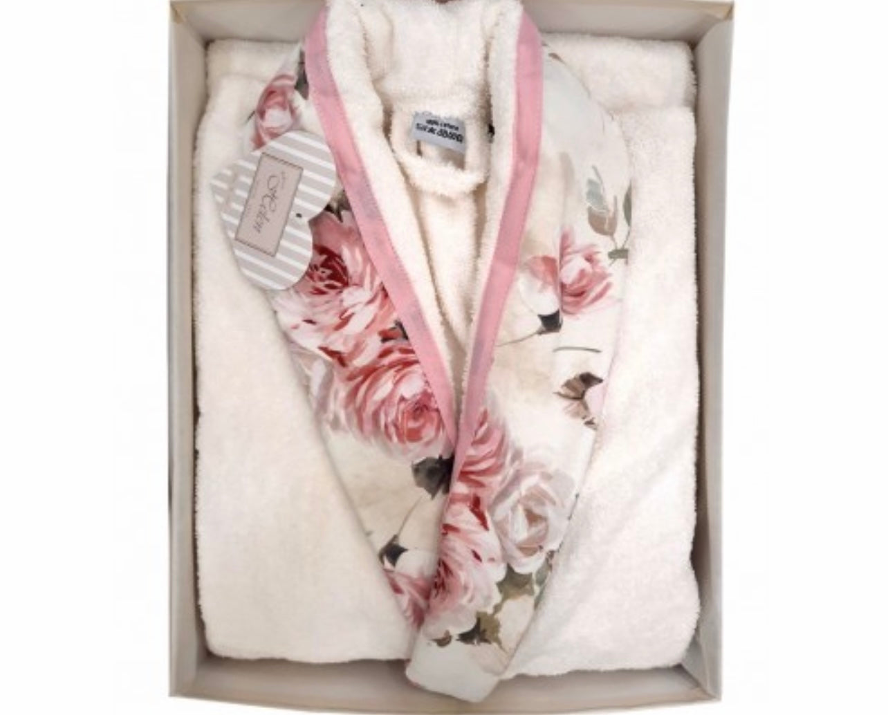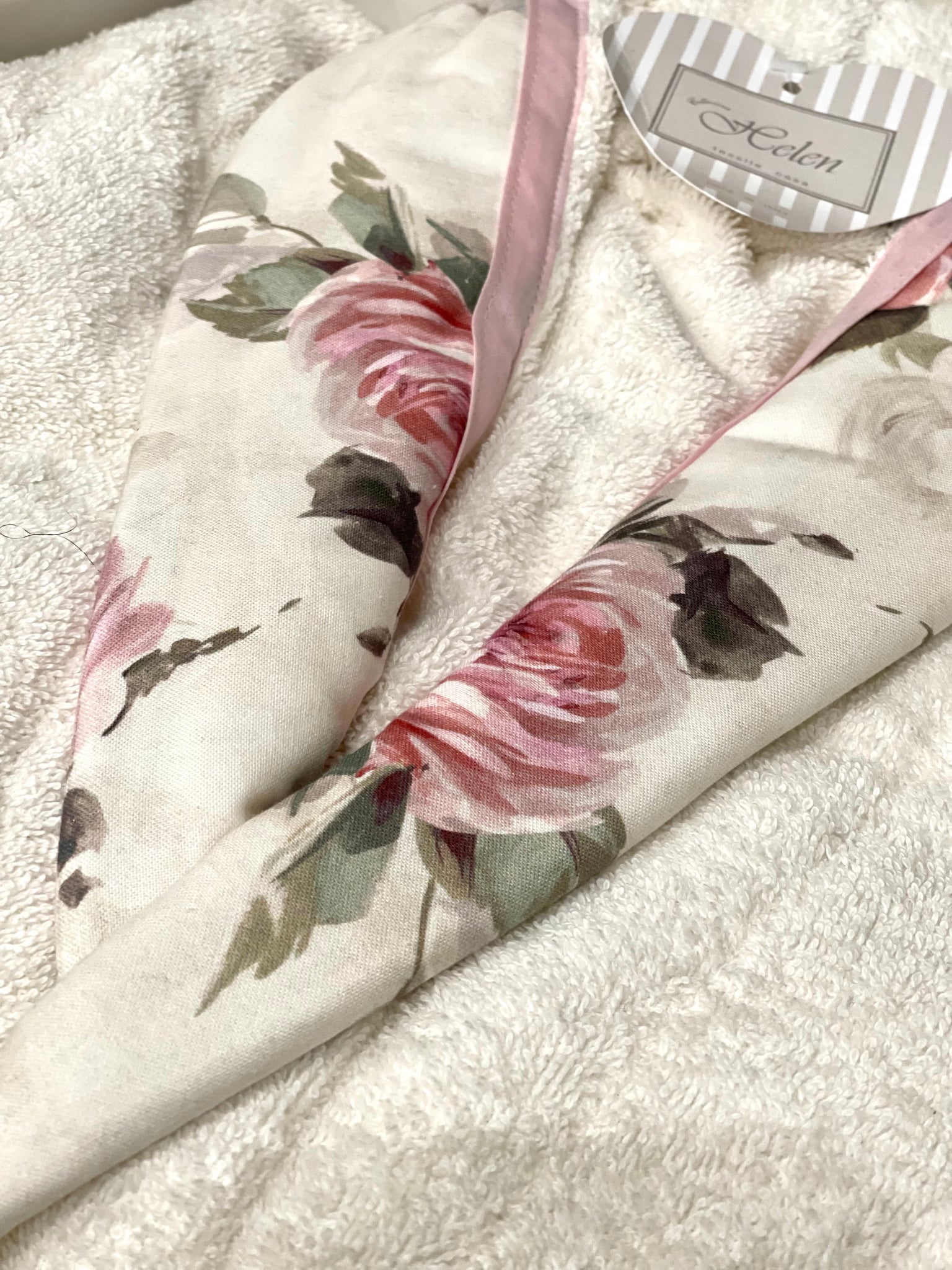 Accappatoio con balza cotone e stampa digitale linea Flower , taglia L.