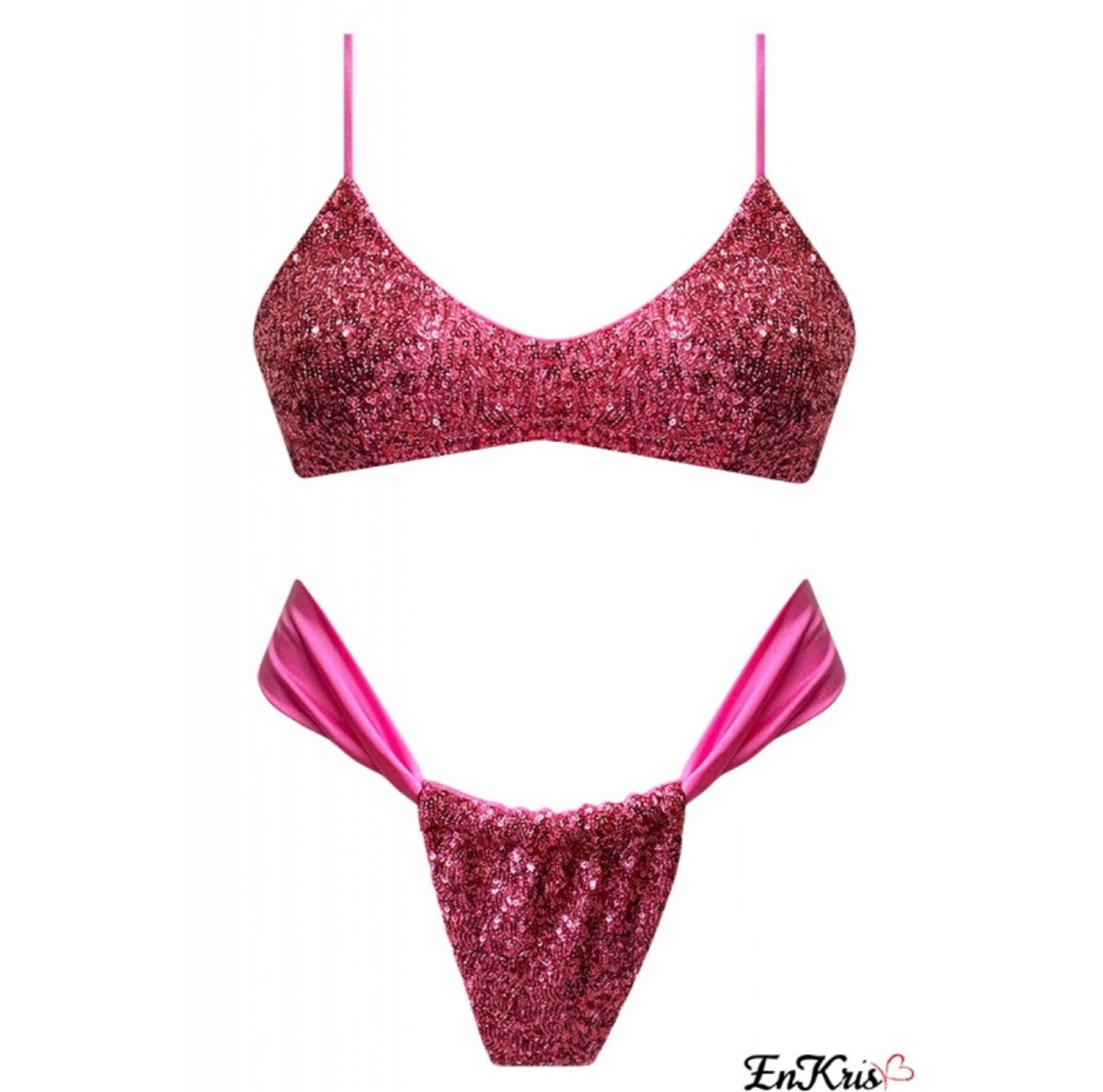 Slip regolabile in paillettes con fasce laterali in tinta di lycra. Retro brasiliana.