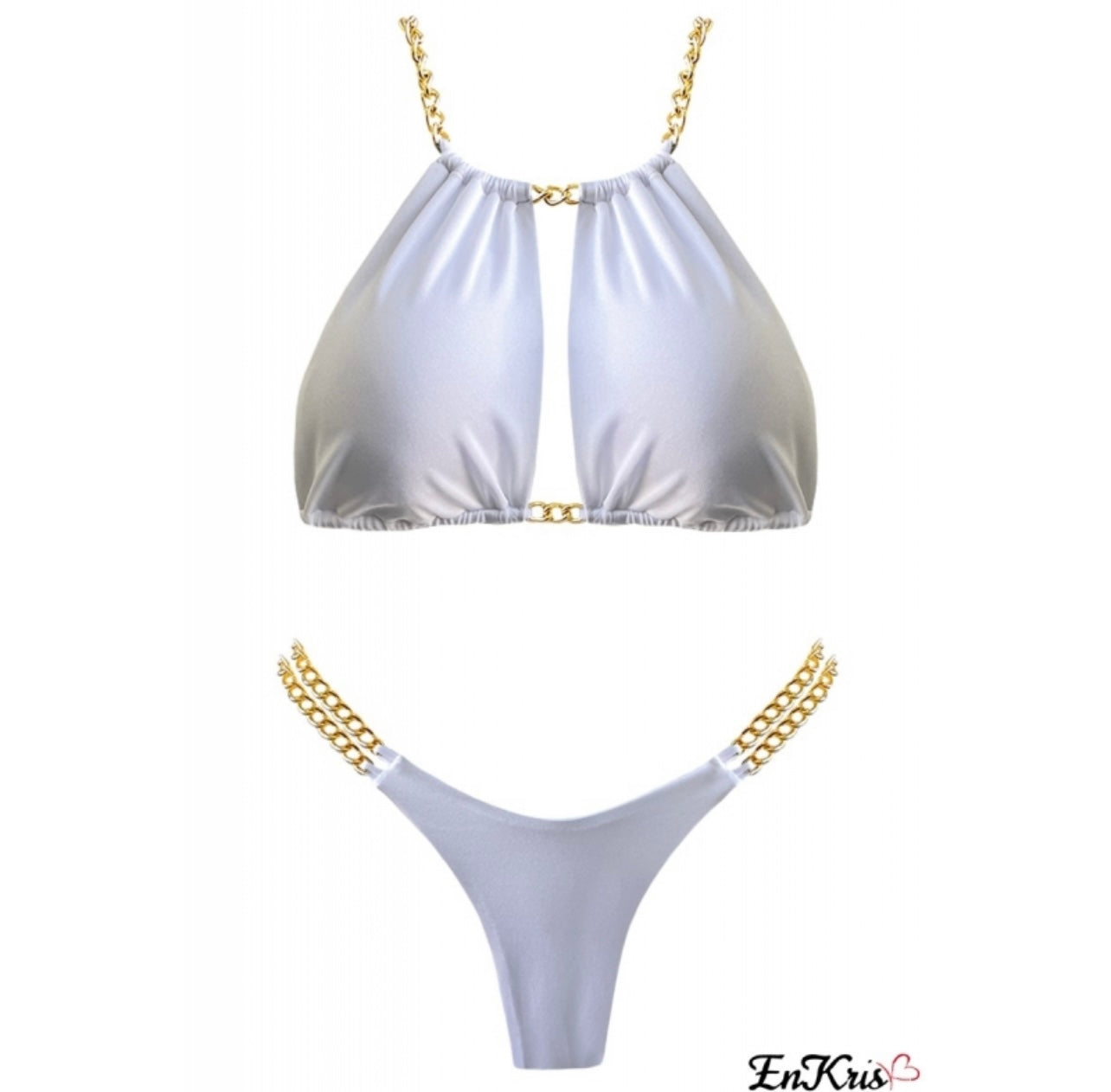 Slip con taglio a 'V' ornato da doppia catena ad anelli placcata oro 'nichel free' di prima scelta.