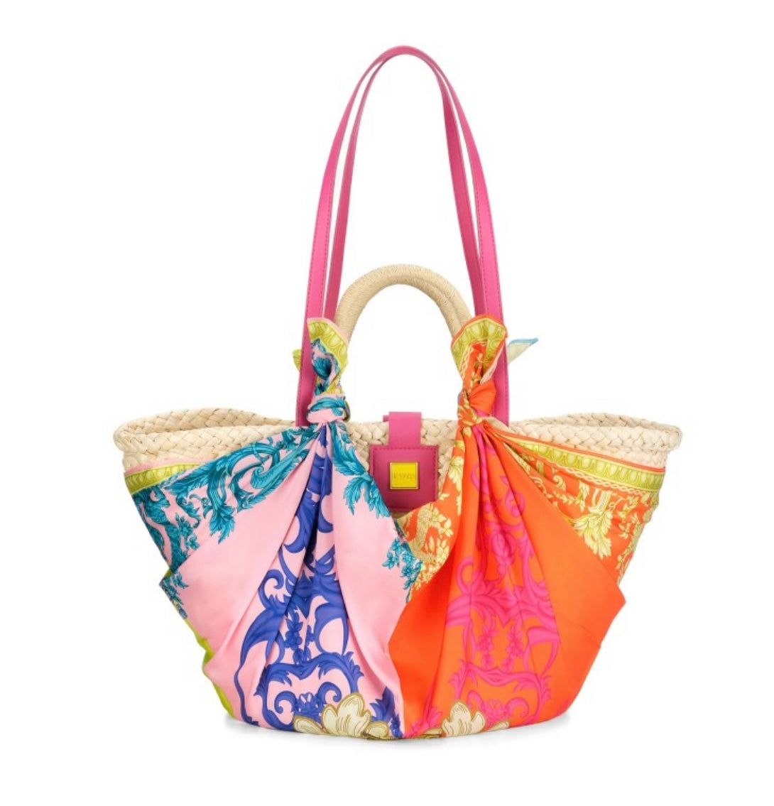 BORSA IN PAGLIA CON FOULARD "LEONE IMPERIALE" - EMANUELA BIFFOLI 22251