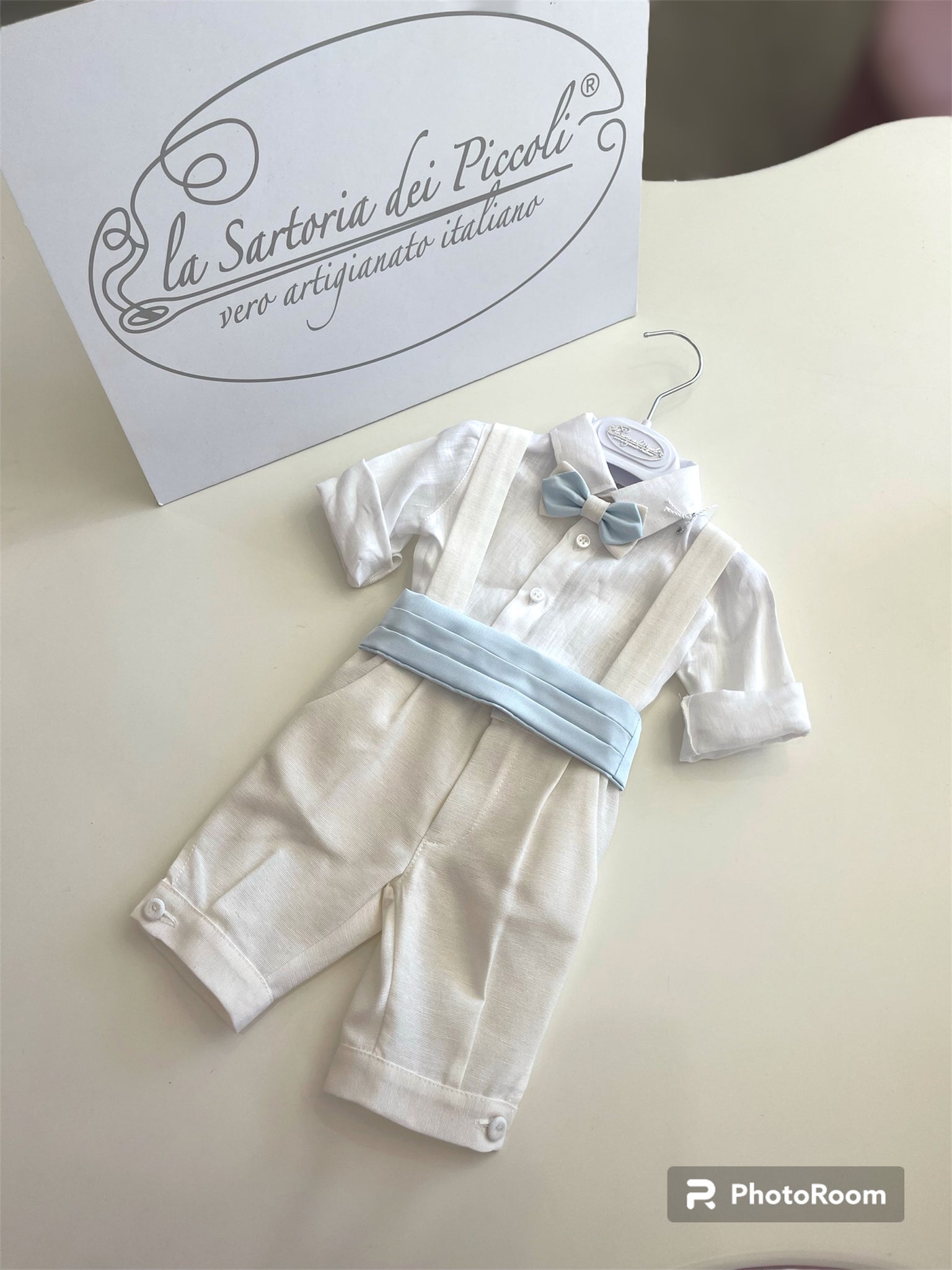 Completo cerimonia La sartoria dei piccoli panna e azzurro