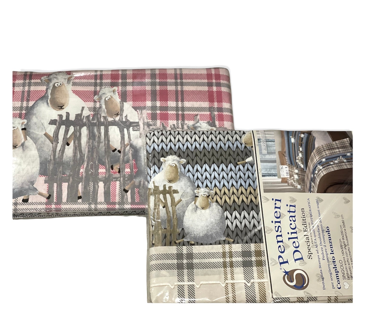 Lenzuolo sopra 250x300 cmLenzuolo sotto con angoli 180x200 cm2 Federe a sacchetto doubleface 52x82 cm