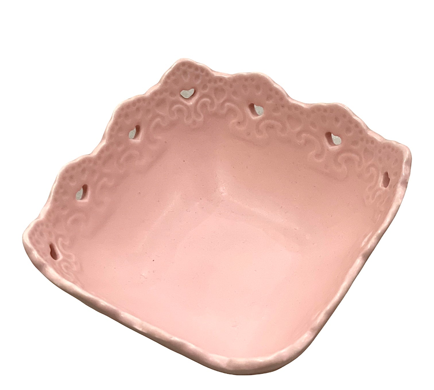 Coppetta dolci Blanc Mariclo' bordo smerlato ceramica rosa shabby chic
