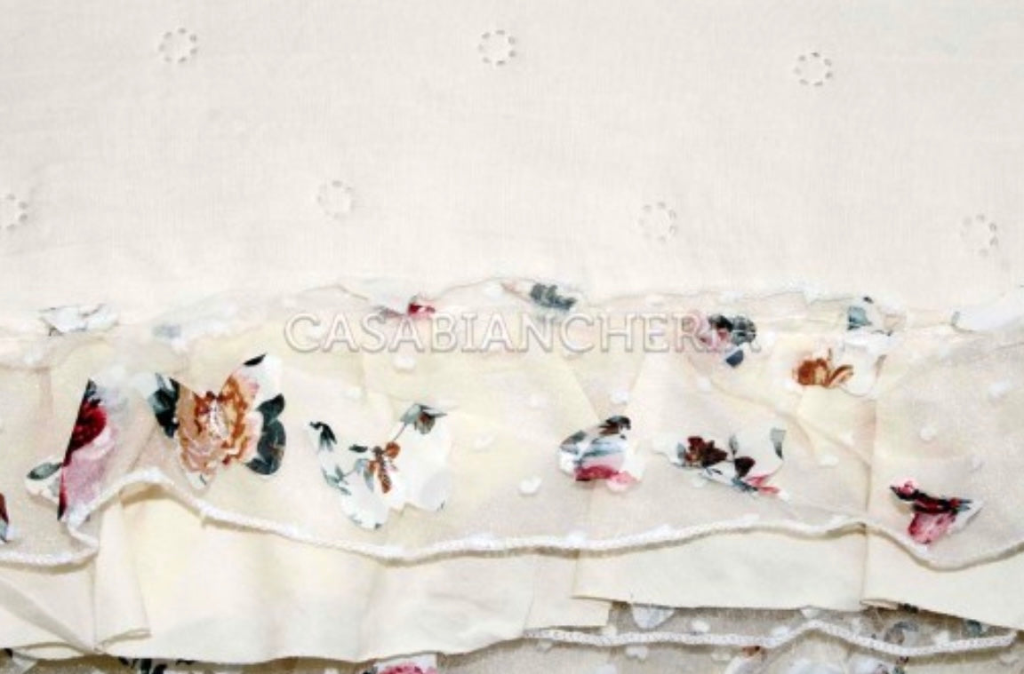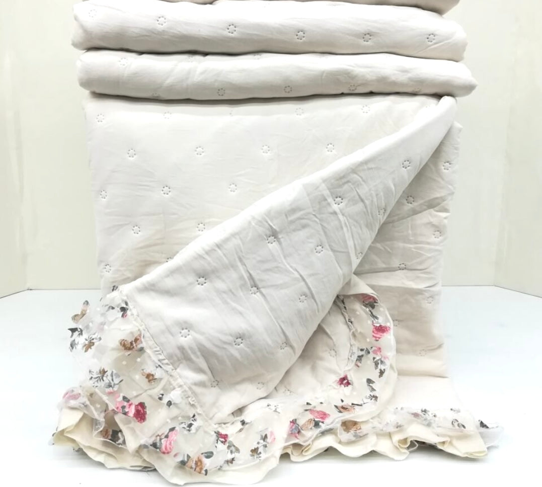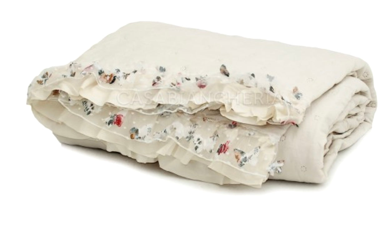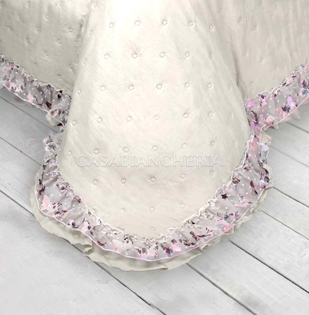 COPRILETTO TRAPUNTATO MATRIMONIALE CON VOLANT ORGANDIS +Colori (Avorio-Rosa)