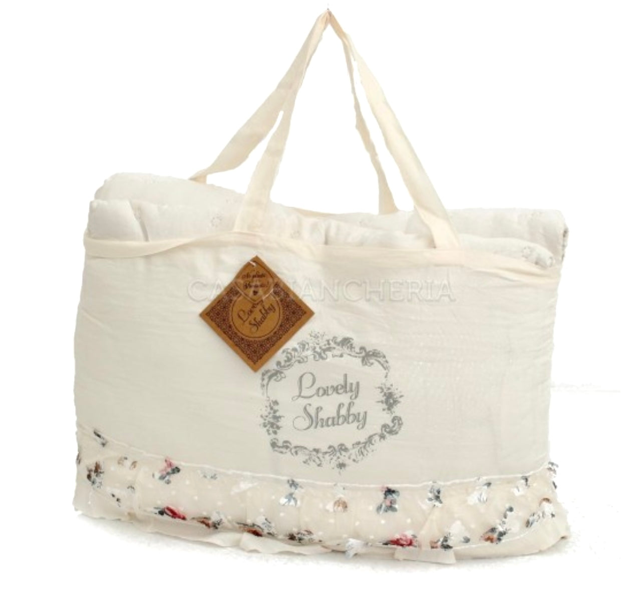 Copriletto trapuntato in tinta unita confezionato in borsa con manici abbinata al trapuntino
