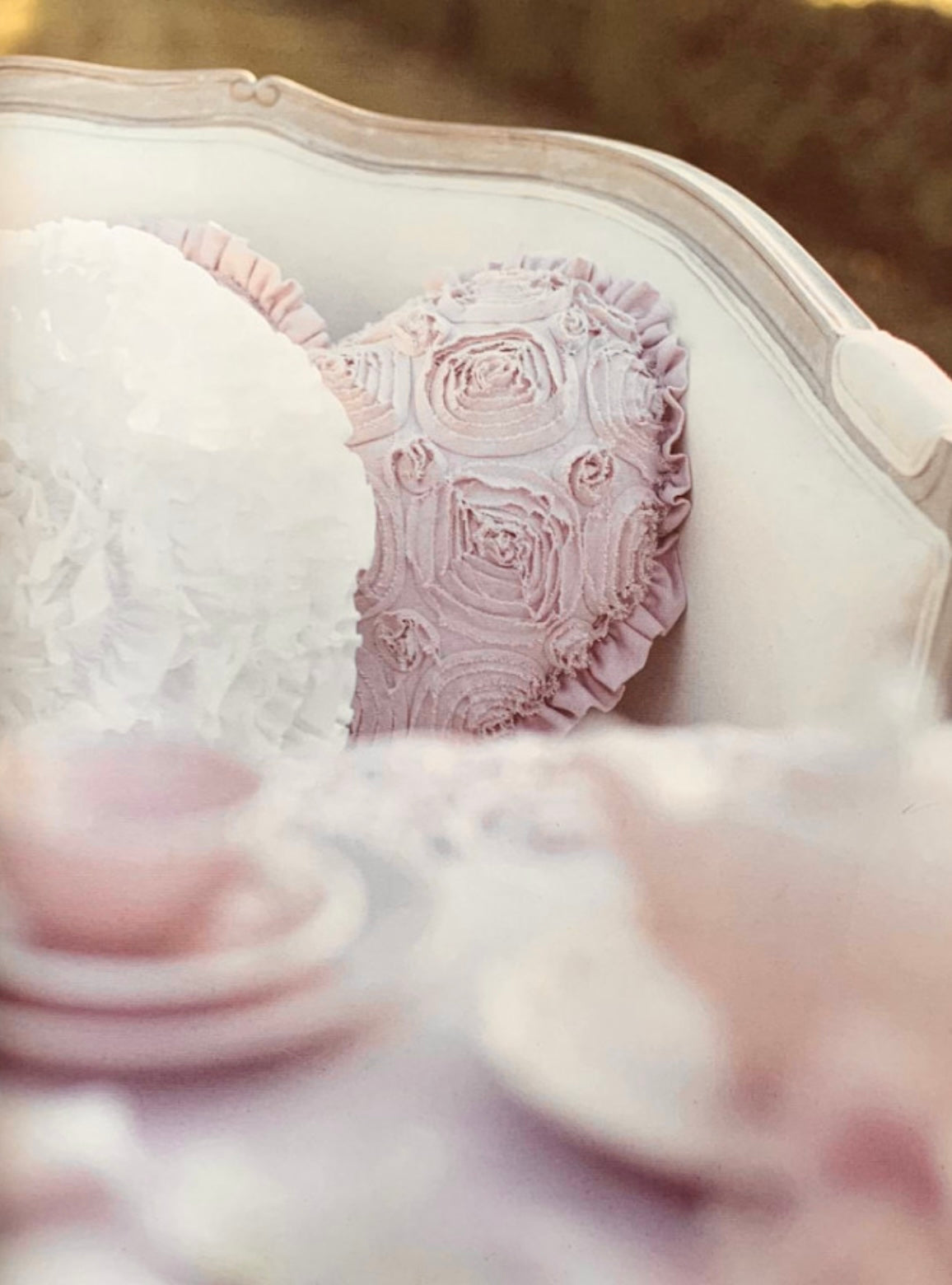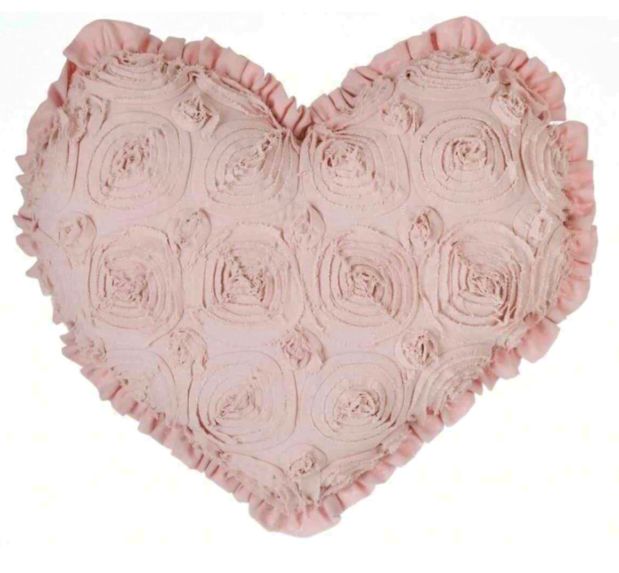 Cuscino con rose della collezione Blanc Mariclò Deco rose. Misure: A FORMA DI CUORE: 60x50cm