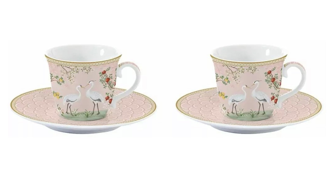 EasyLife Dancing Herons Set 2 tazzine caffe con piattino in porcellana