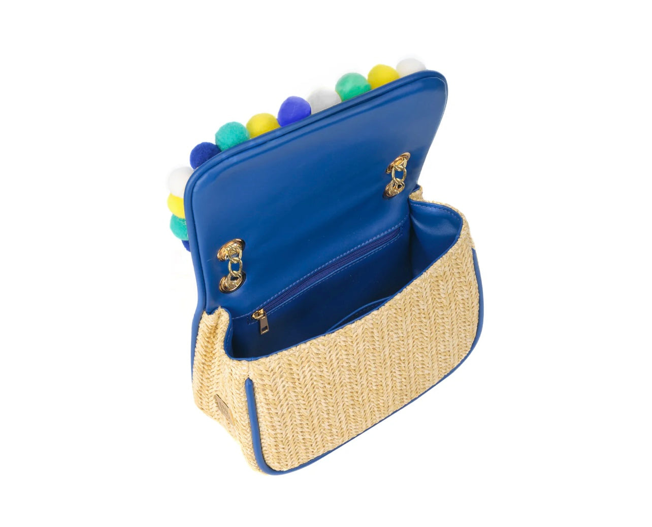Esplora l'estate con EmiBag "Island" in paglia con un ricamo vivace "Capri" in rosso, arricchita da pon-pon multicolori lungo i bordi della pattina. I dettagli in eco-pelle rossa aggiungono un tocco di eleganza, mentre la tracolla con catena dorata (lunghezza 100 cm) offre praticità e stile.