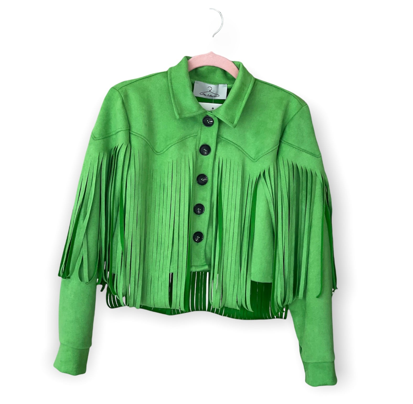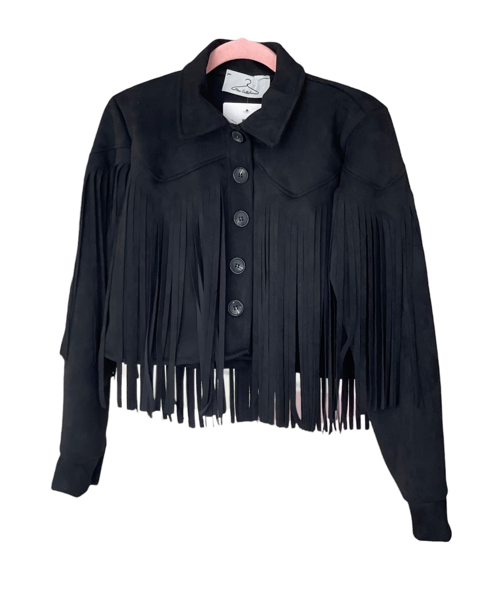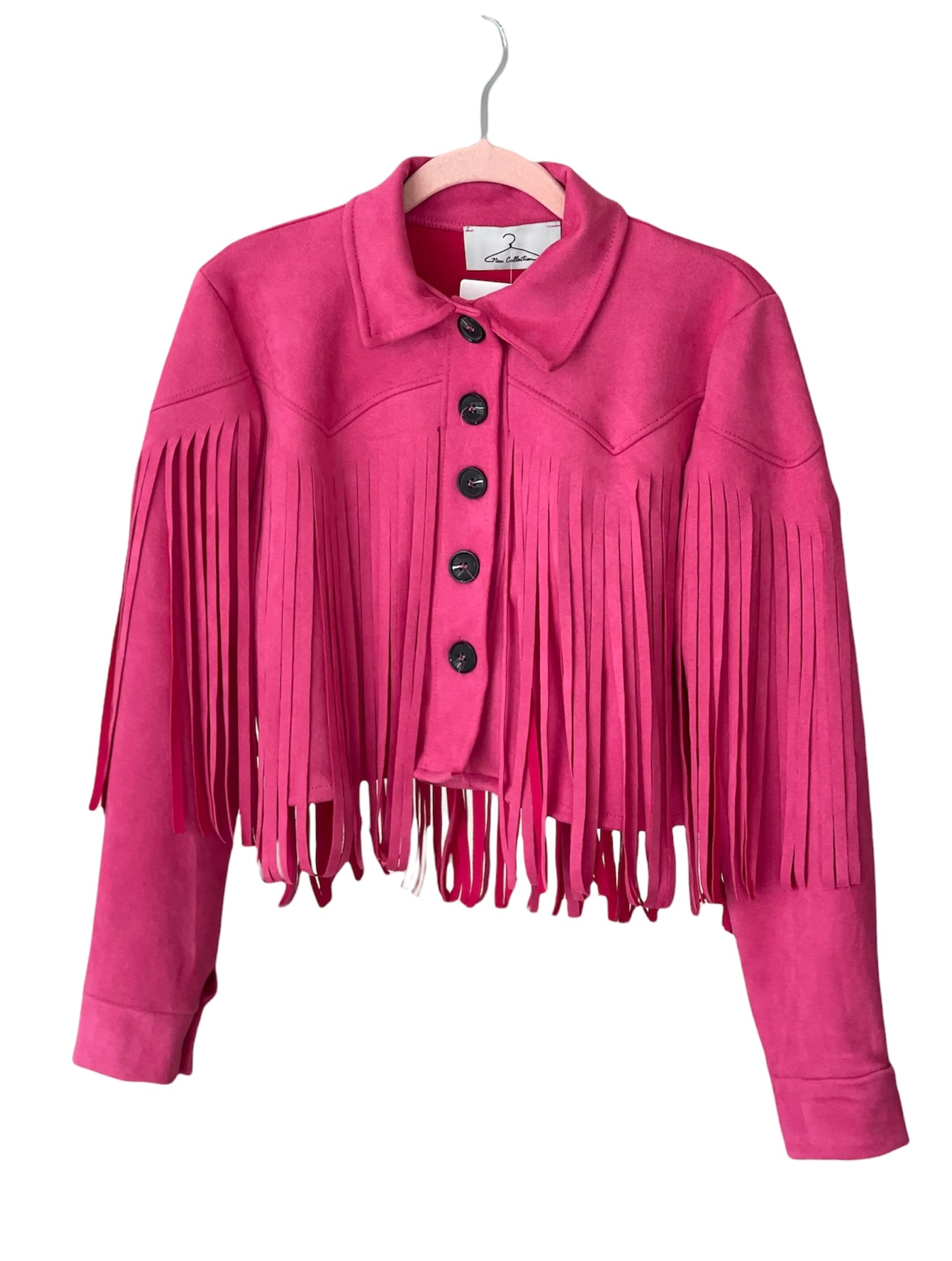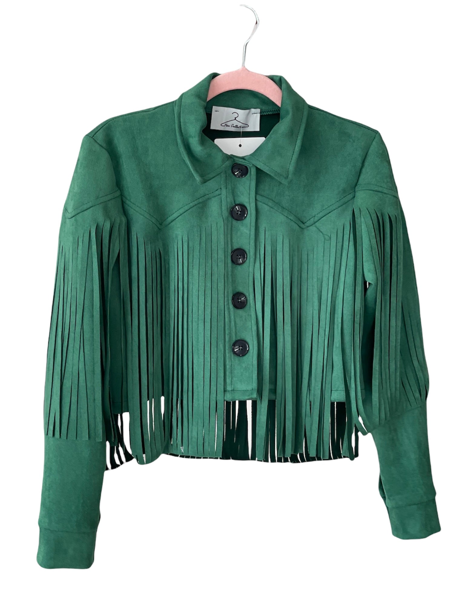 Giacca crop frange scamosciata con bottoni