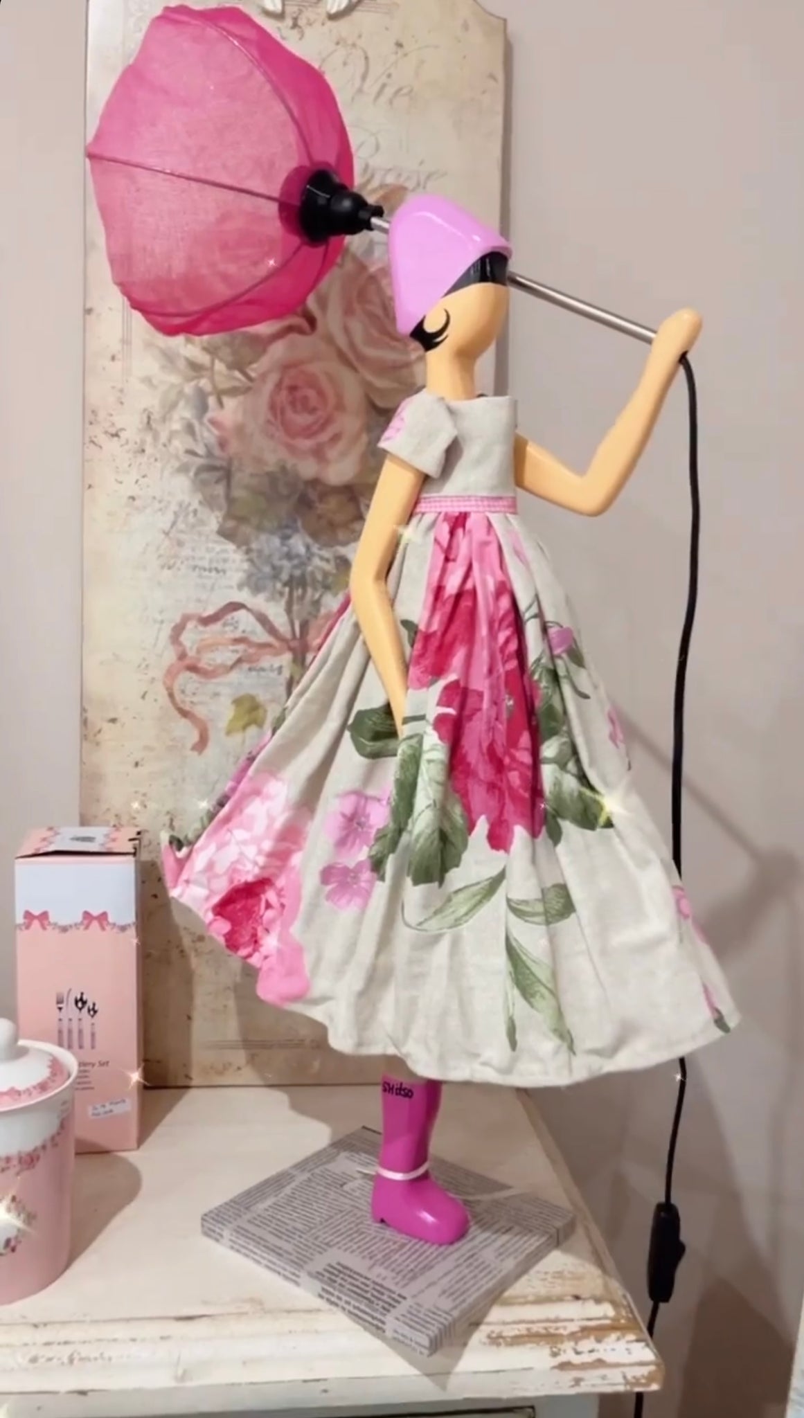 Ti presentiamo ORTANSA…perfetta per gli amanti della natura, noi ce la immaginiamo in una ventosa giornata di Aprile con il suo abito di fiori primaverili. Illumina la tua stanza con la luce accogliente del suo allegro ombrello rosa. Vola via con lei!!!