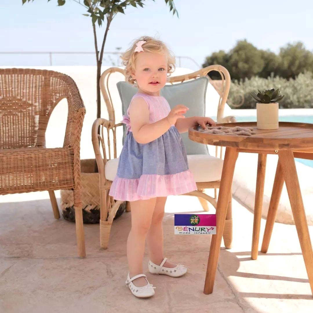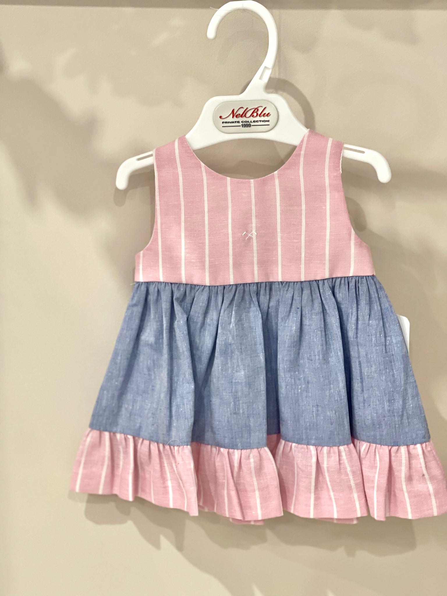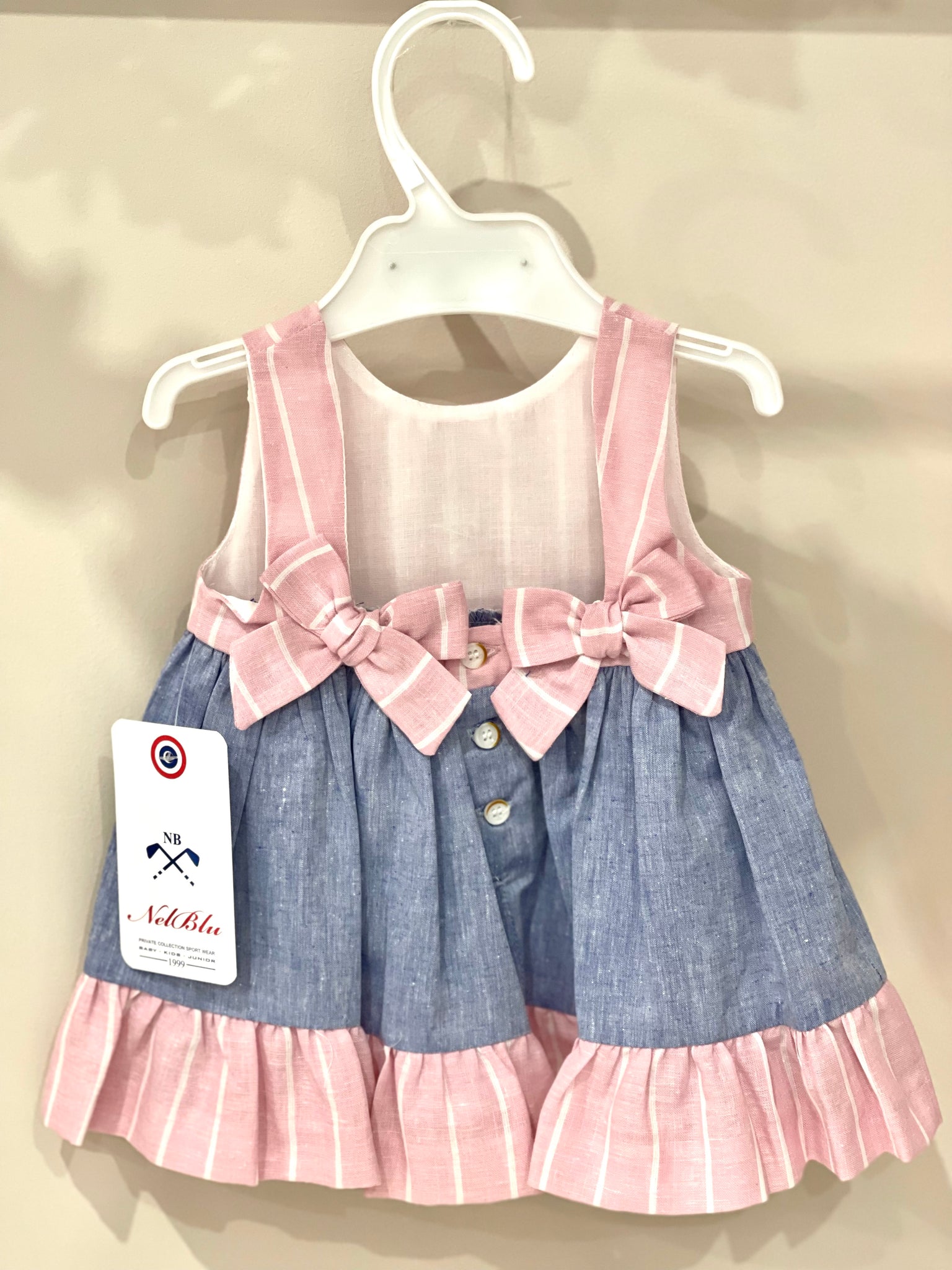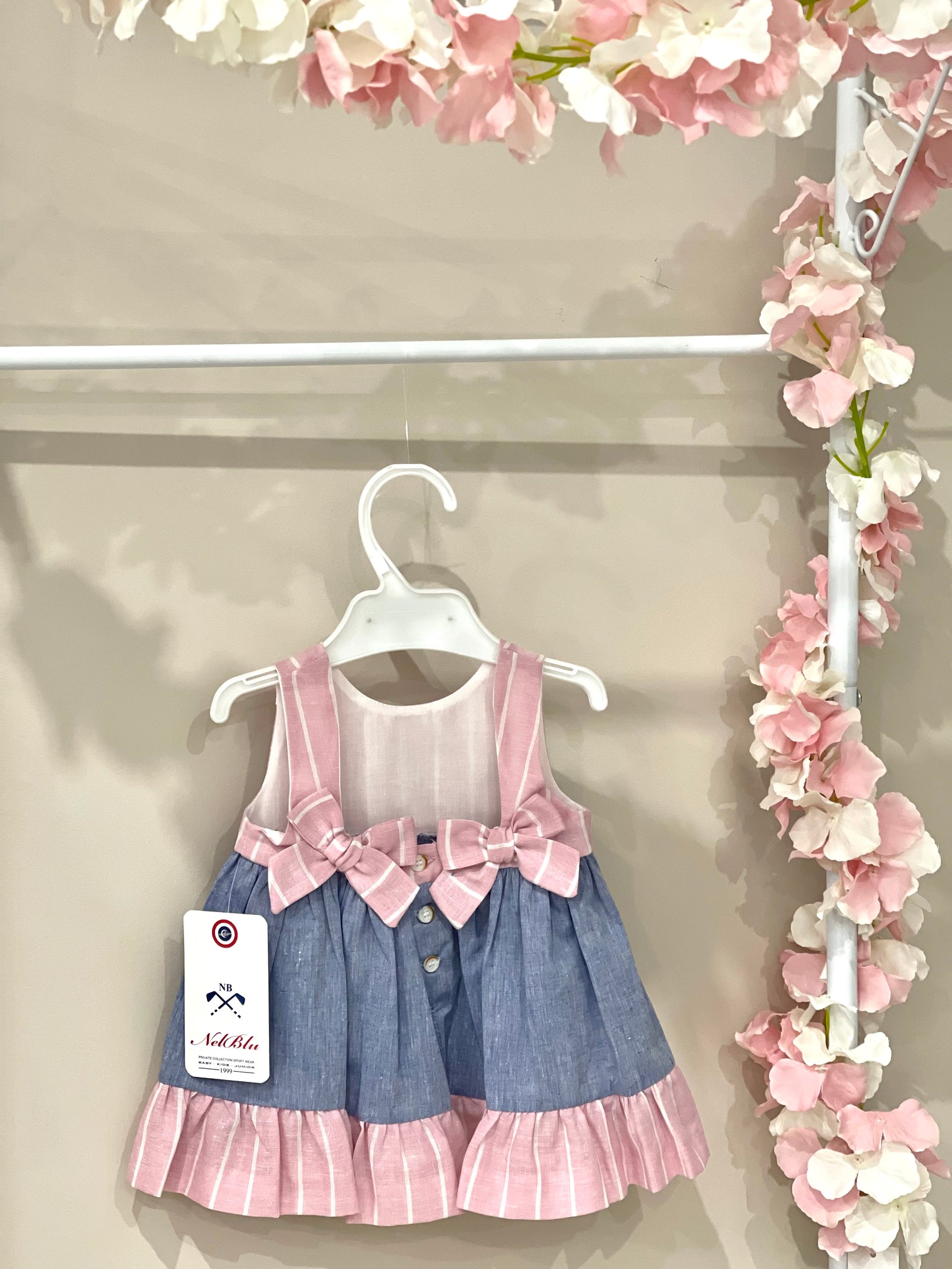 Linea Nel Blu vestitino color jenas e rosa con fiocchi dietro