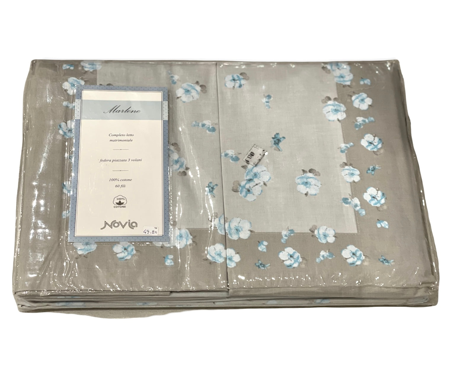 Marlene Completo letto matrimoniale con fuori celeste federa piazzata 3 volani