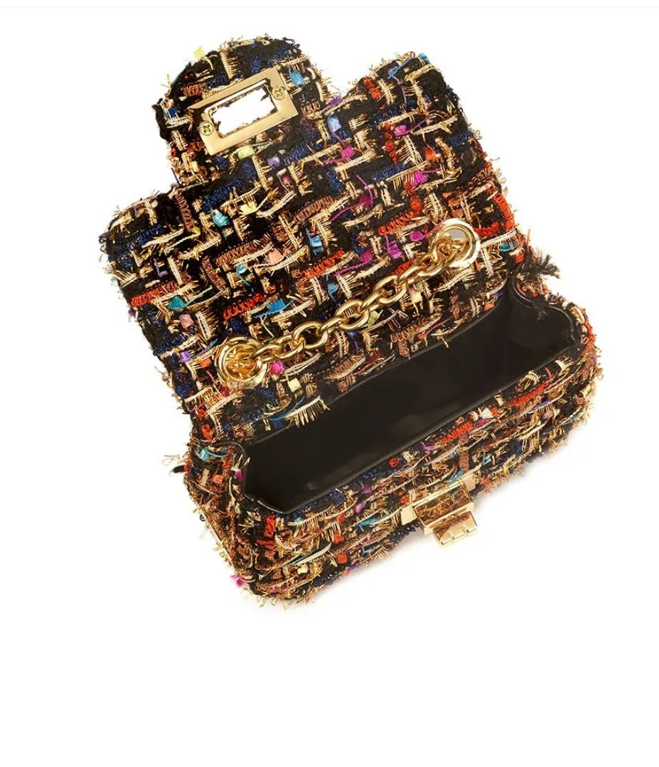 Mini EmiBag Eva in tessuto tweed multicolor.