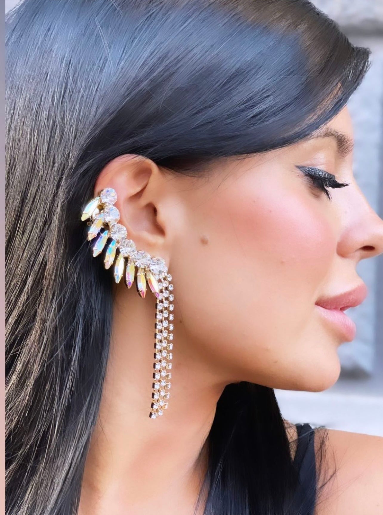 Orecchini di tendenza. Questo prodotto è lavorato interamente in Italia. Con pietre preciose Swarovsky e galvaniche senza nikel.