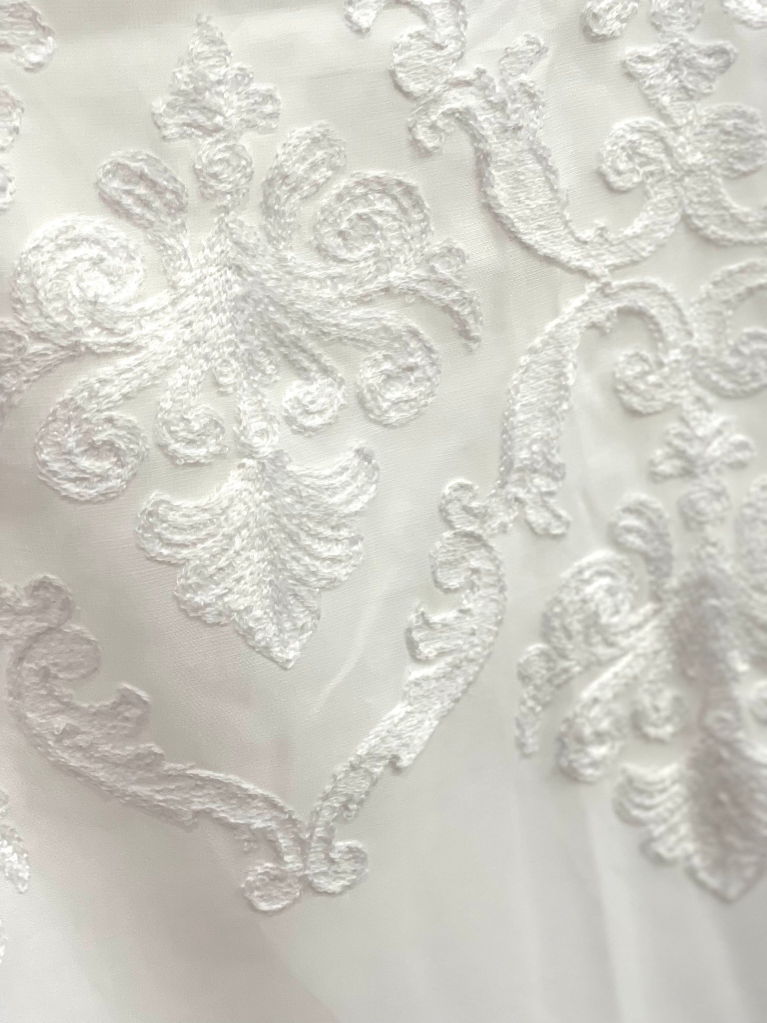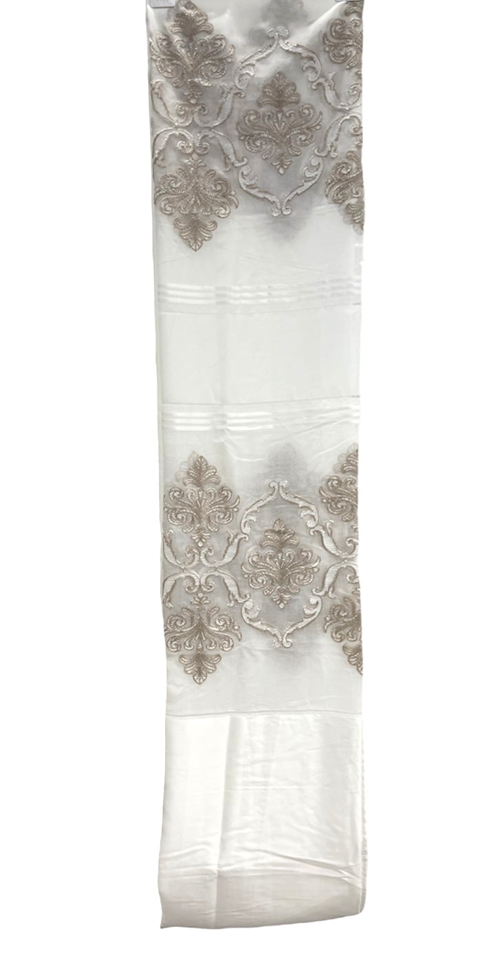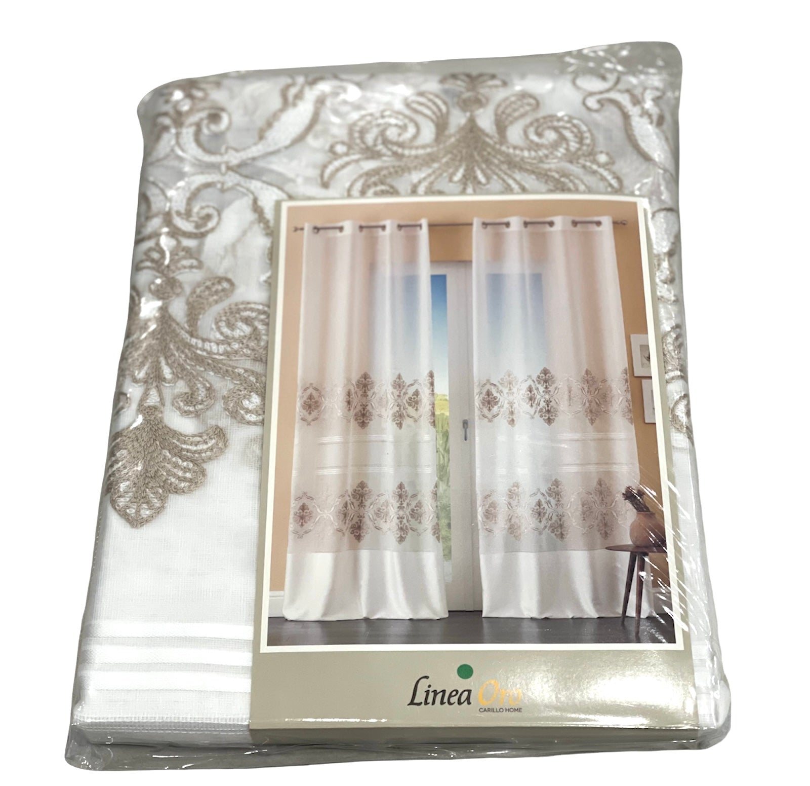 Tenda Linea Oro con anelli e ricami in bianco e Tortora o tutta bianca.