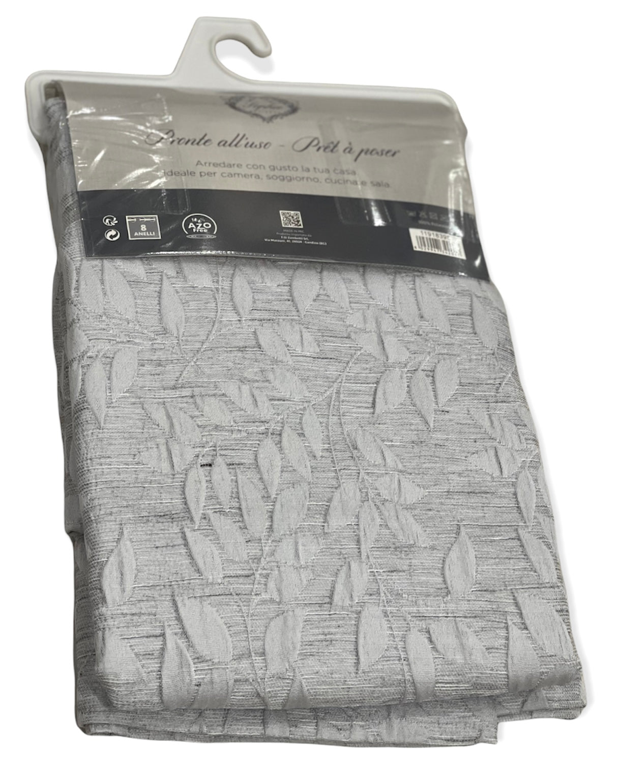 Tendone Giudy con anelli, fantasia con foglie color grigio.