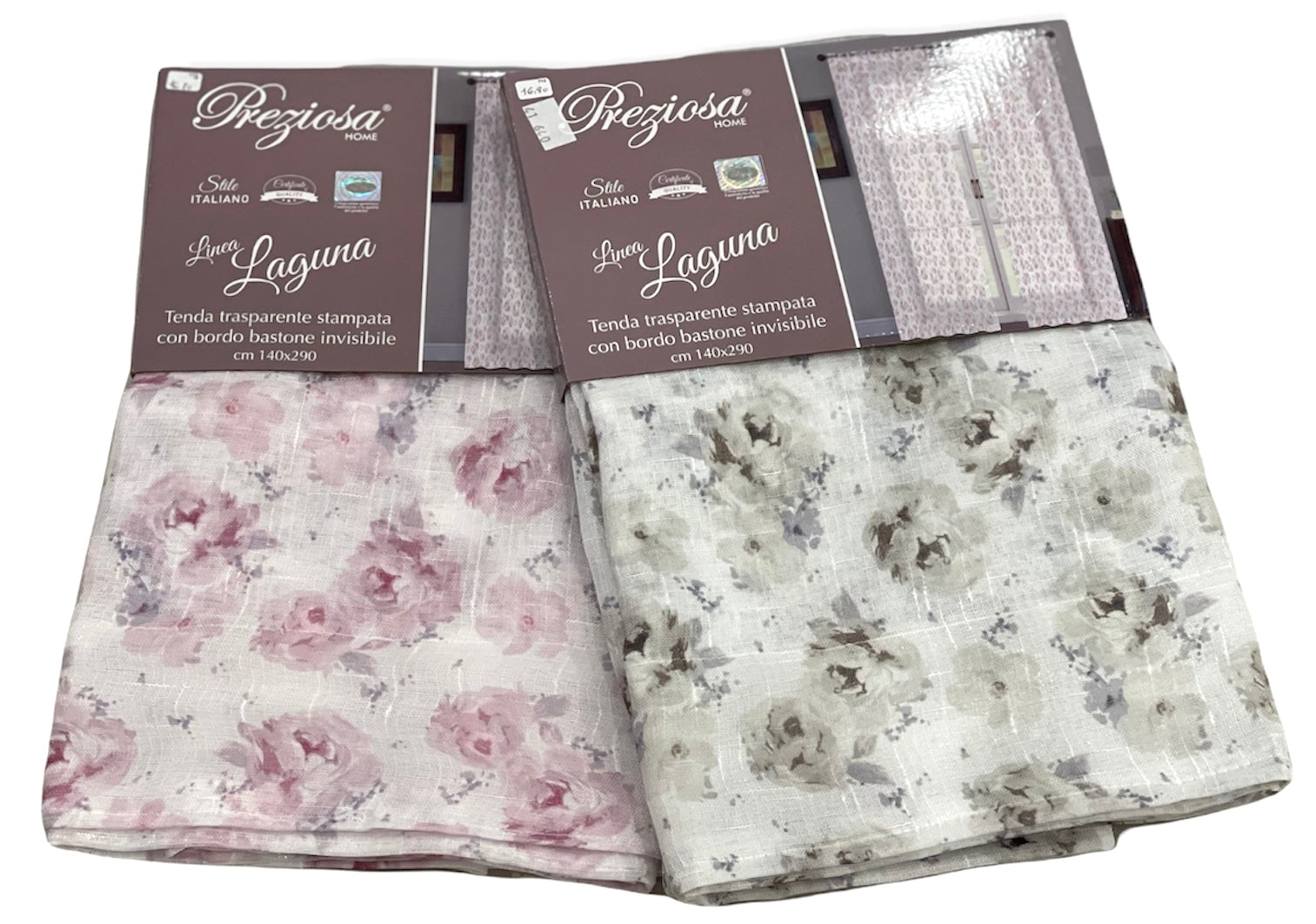 Tenda trasparente stampata con fantasia floreale e bordo bastone invisibile cm140•290.