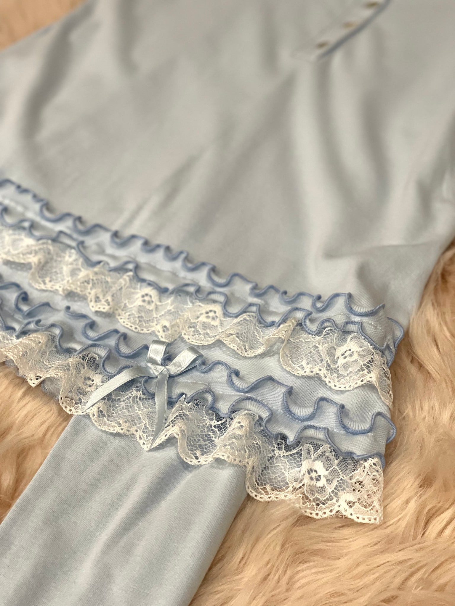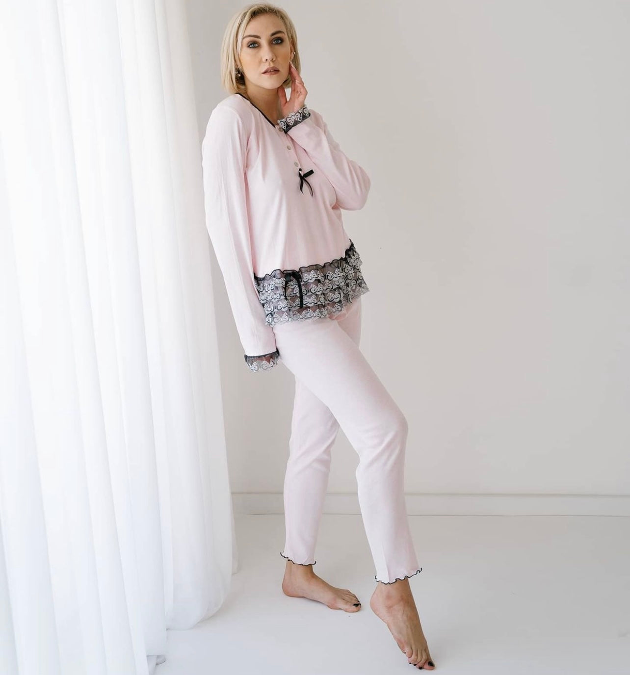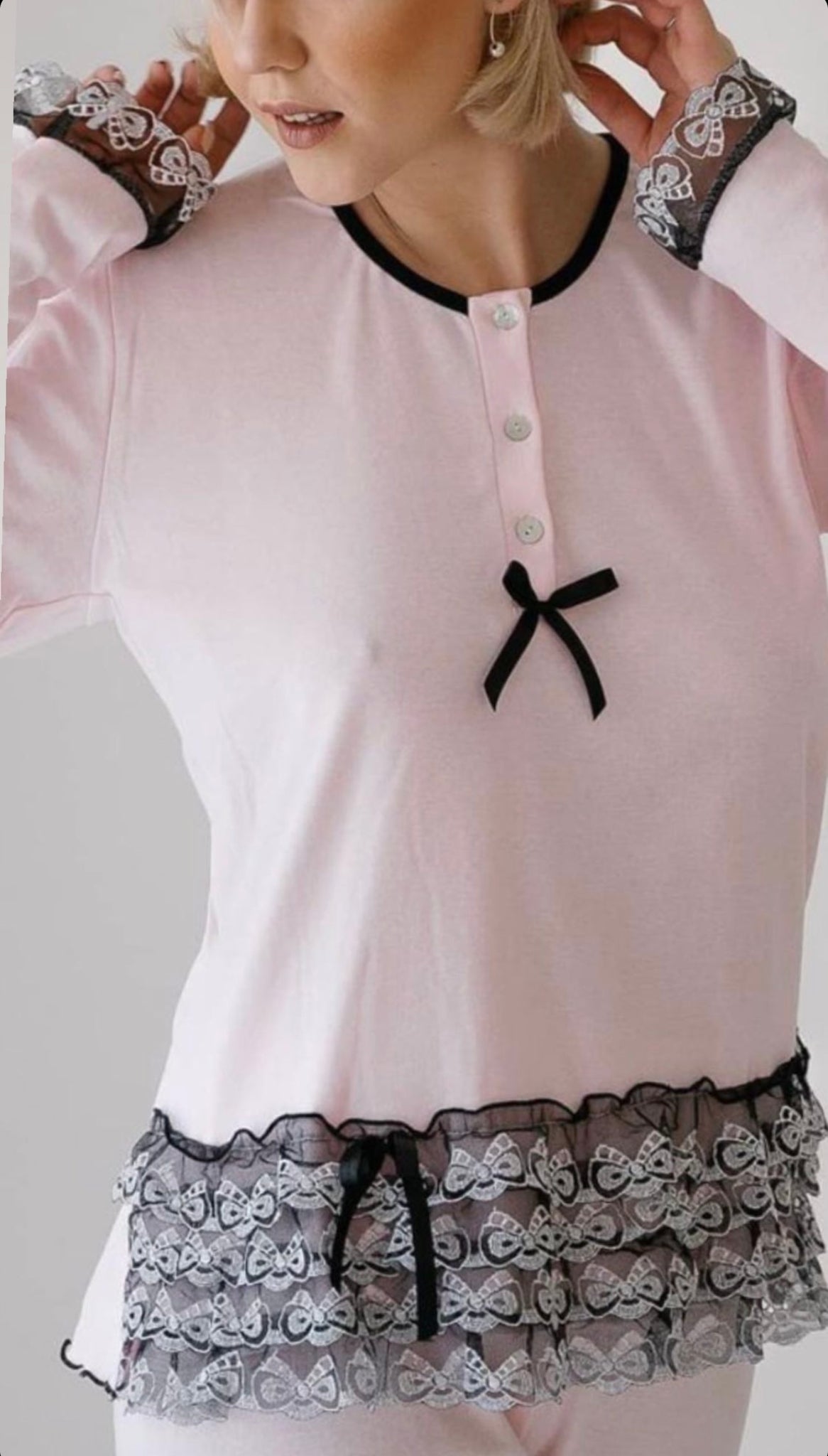 Pigiama con tulle nero e pizzo in rosa o celeste.