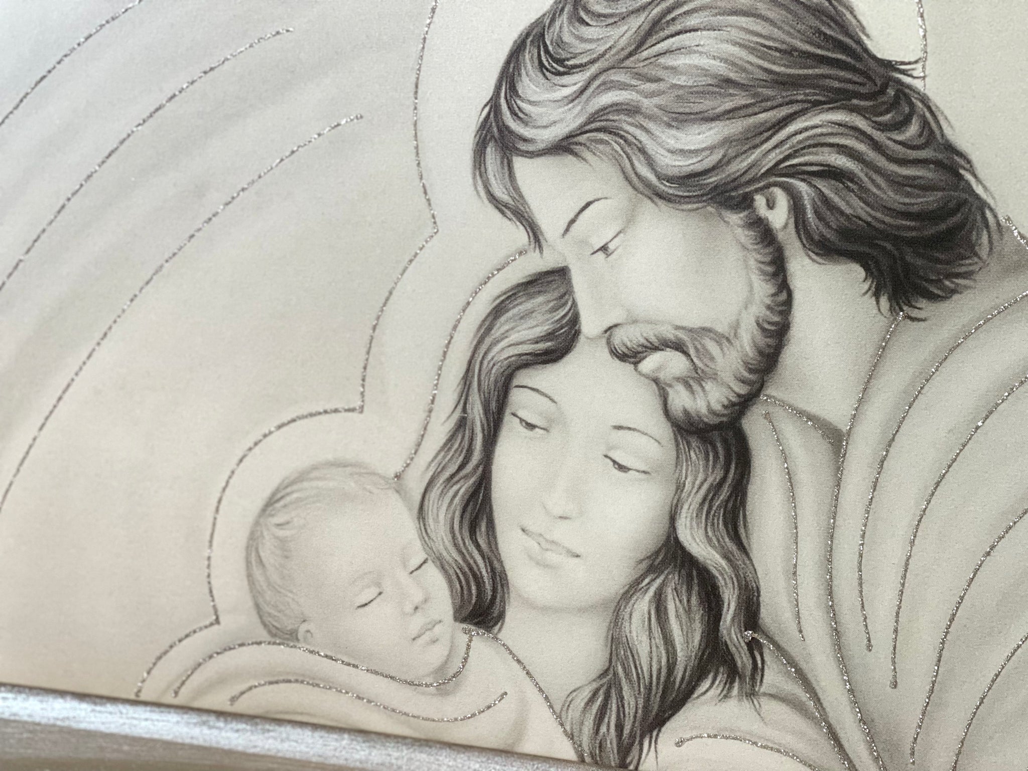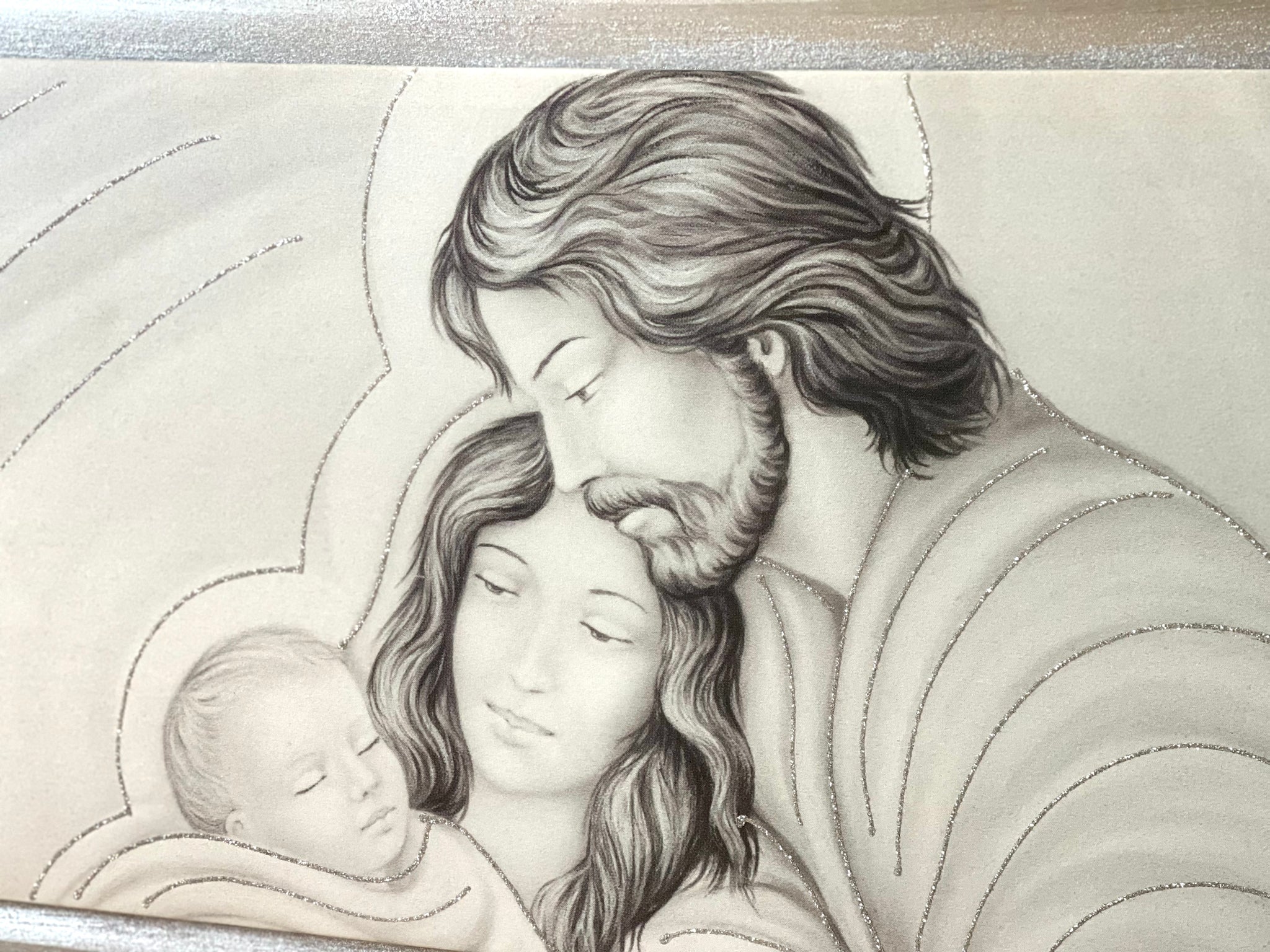 Quadro natività nei toni del grigio, cornice argento
