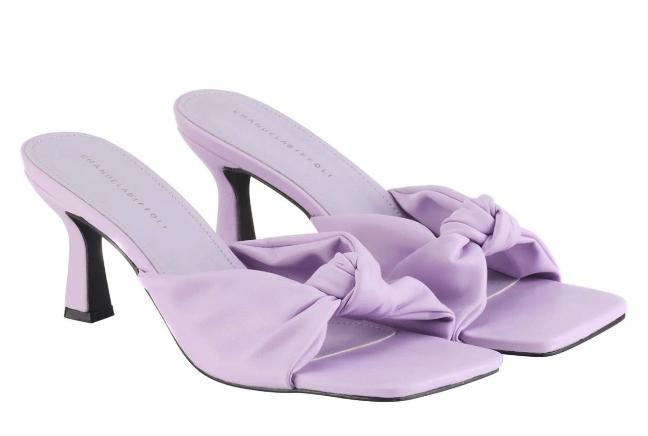i nostri sabot lilla con una elegante fascia intrecciata in morbida ecopelle liscia, caratterizzati da una moderna punta squadrata e un tacco di 5 cm. Aggiungi un tocco di stile e comfort al tuo look con i nostri sabot dalla silhouette sofisticata e contemporanea.
