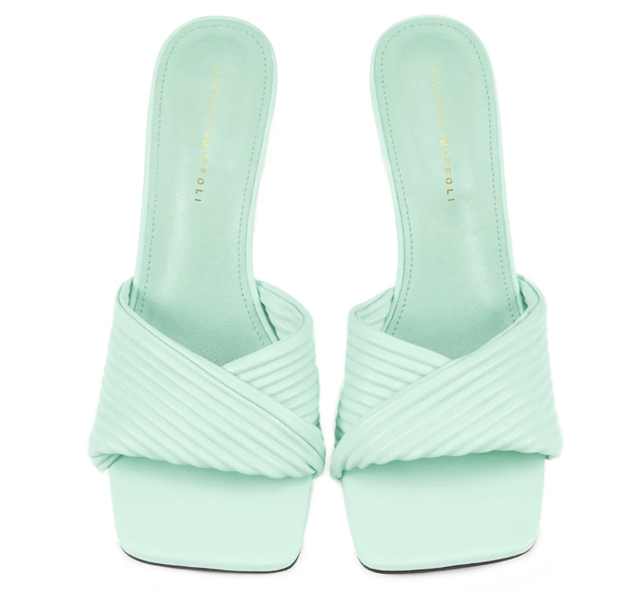 i nostri sabot turchesi, caratterizzati da una elegante fascia intrecciata in morbida ecopelle plissettata, una moderna punta squadrata e un tacco di 5 cm. Aggiungi un tocco di colore e stile al tuo look con i nostri sabot dalla silhouette sofisticata e contemporanea.