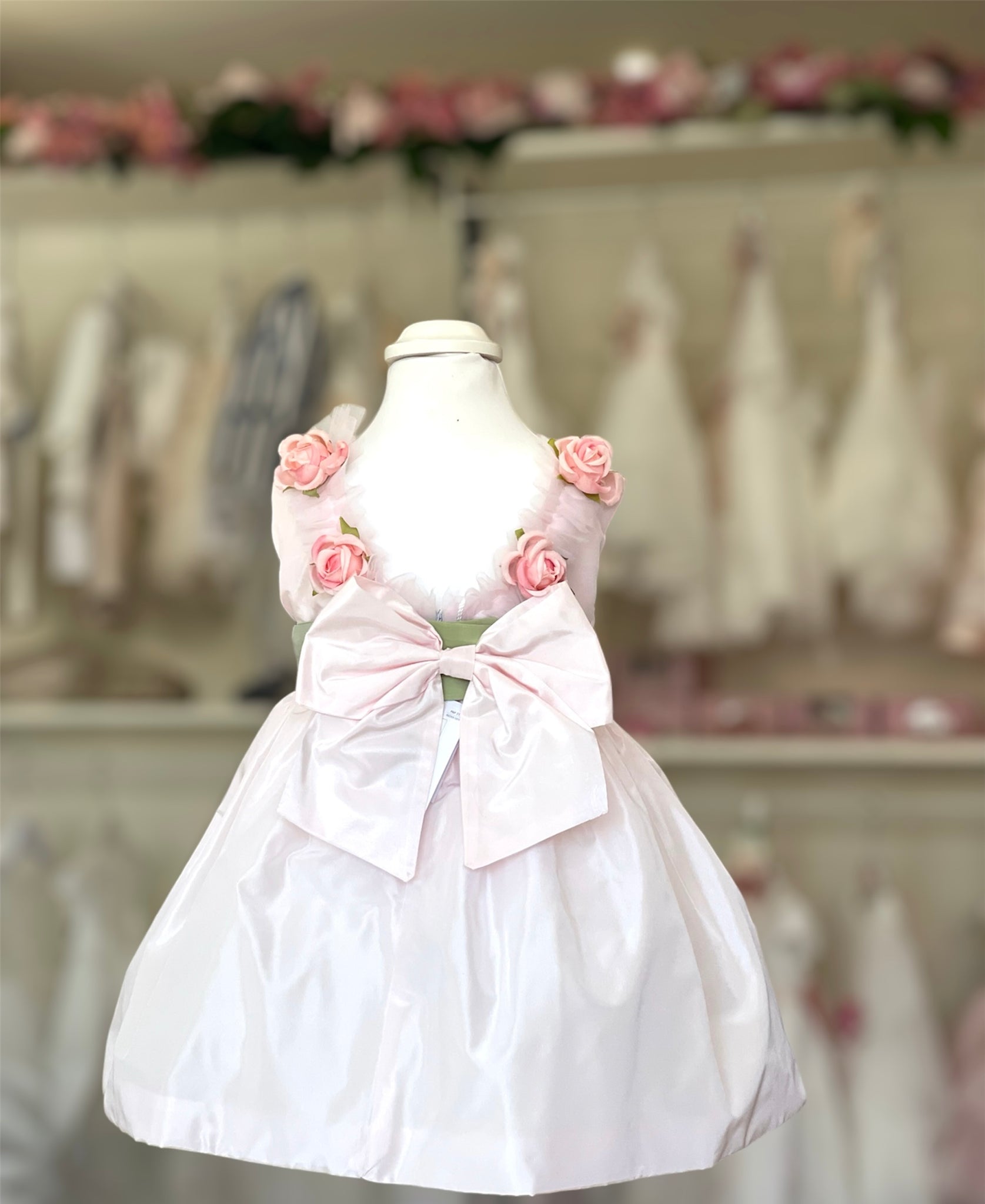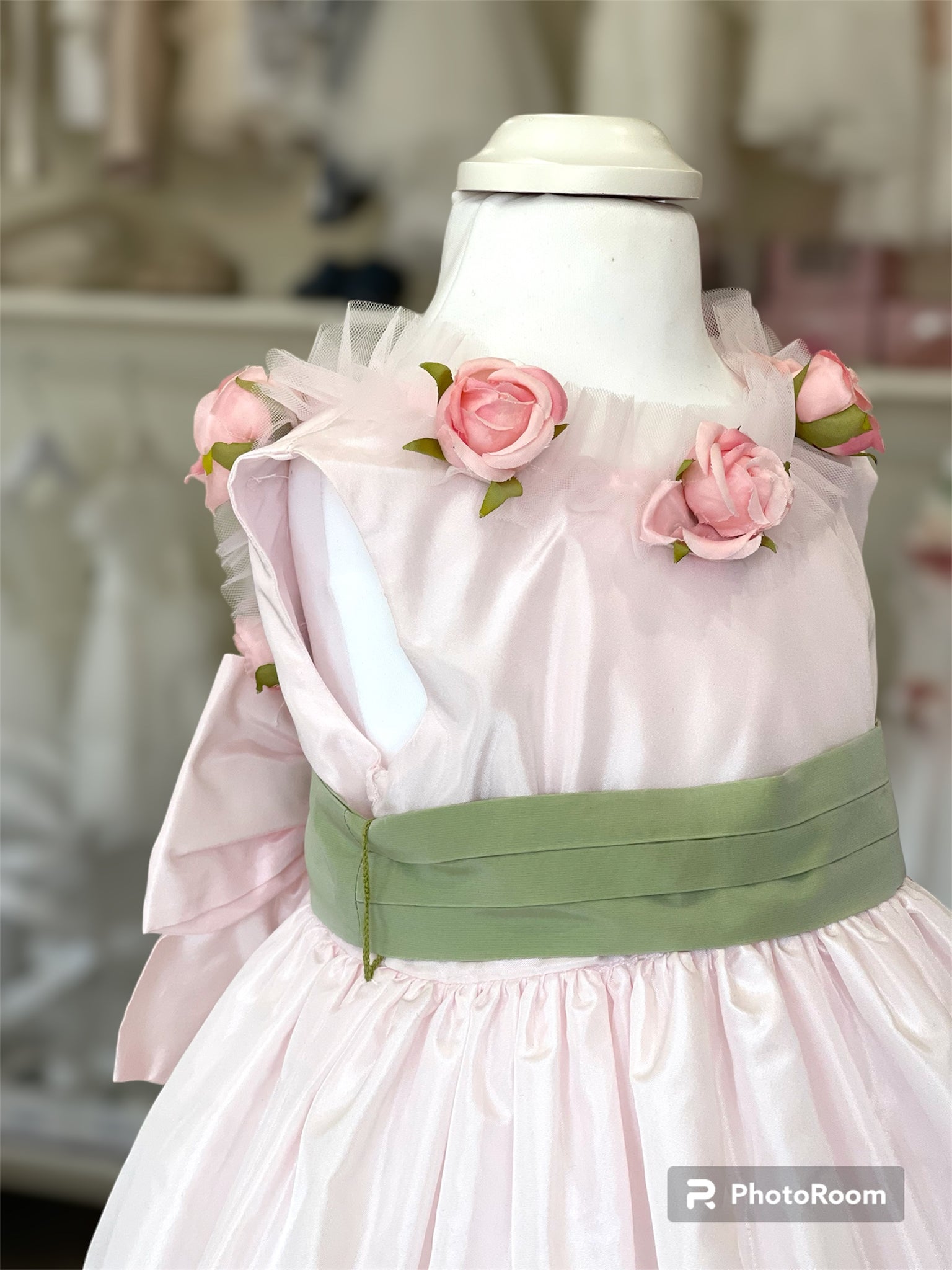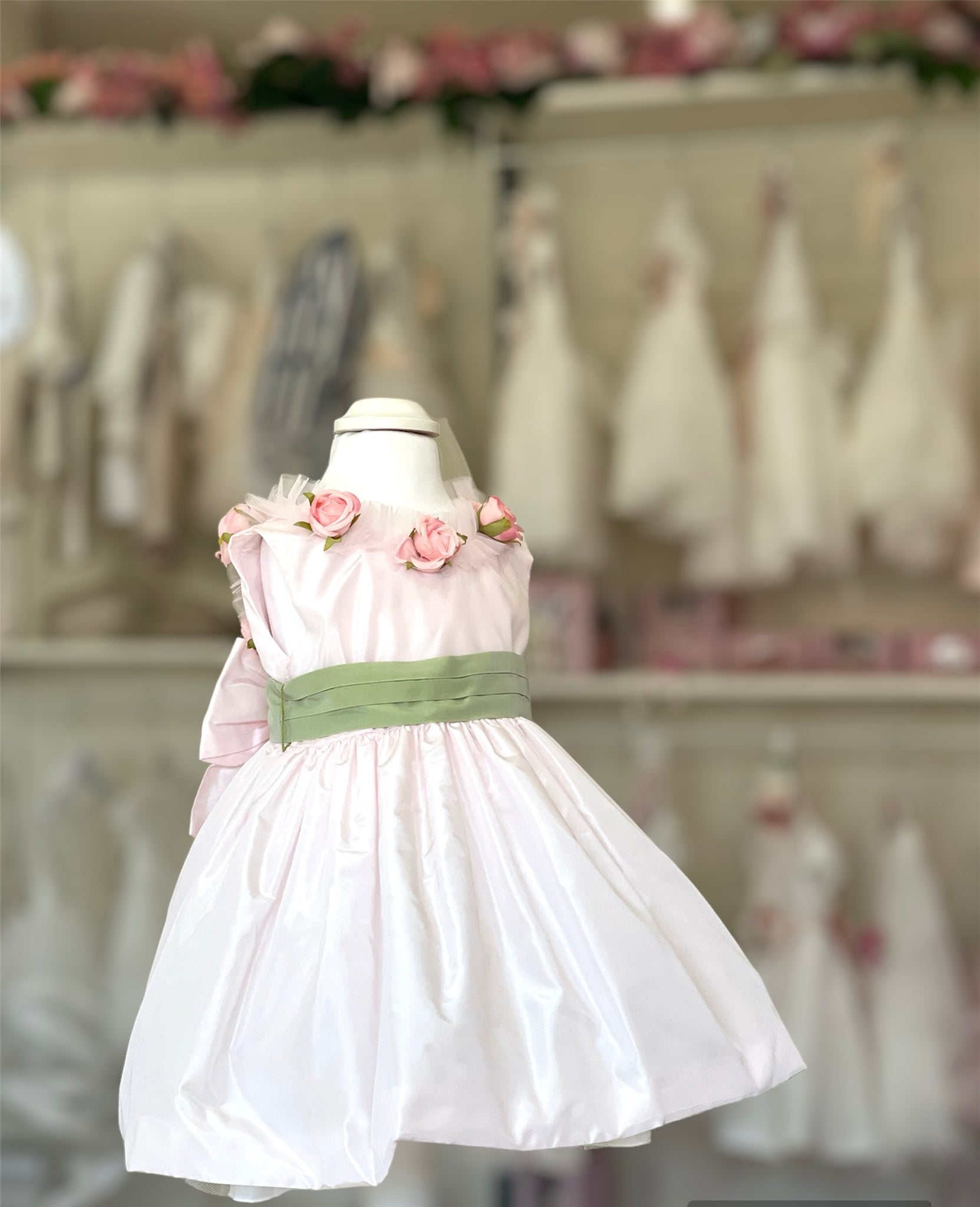 Vestitino in Taftá con rose “la sartoria dei piccoli”