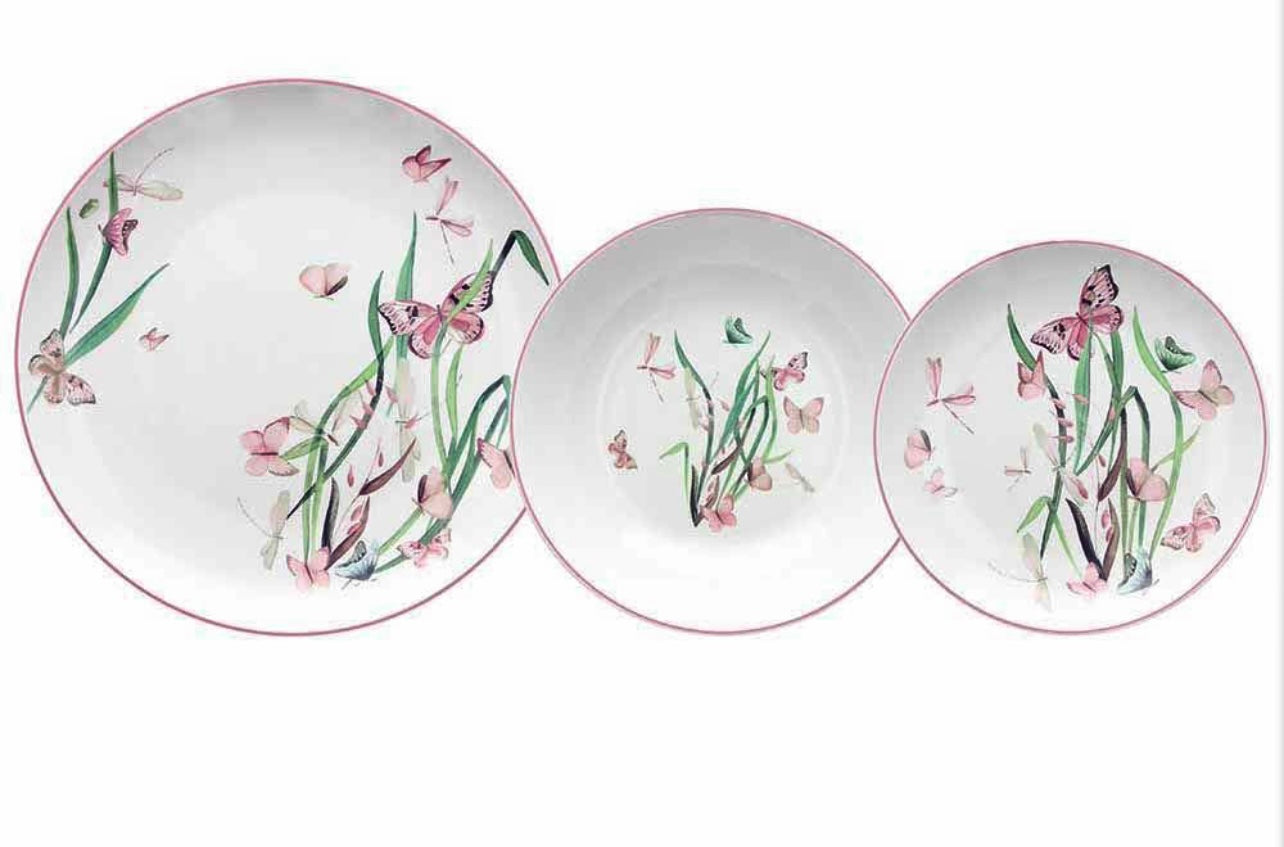 Servizio Piatti 18 Pezzi Butterfly Ball Porcellana Rosa LINEA MOON
