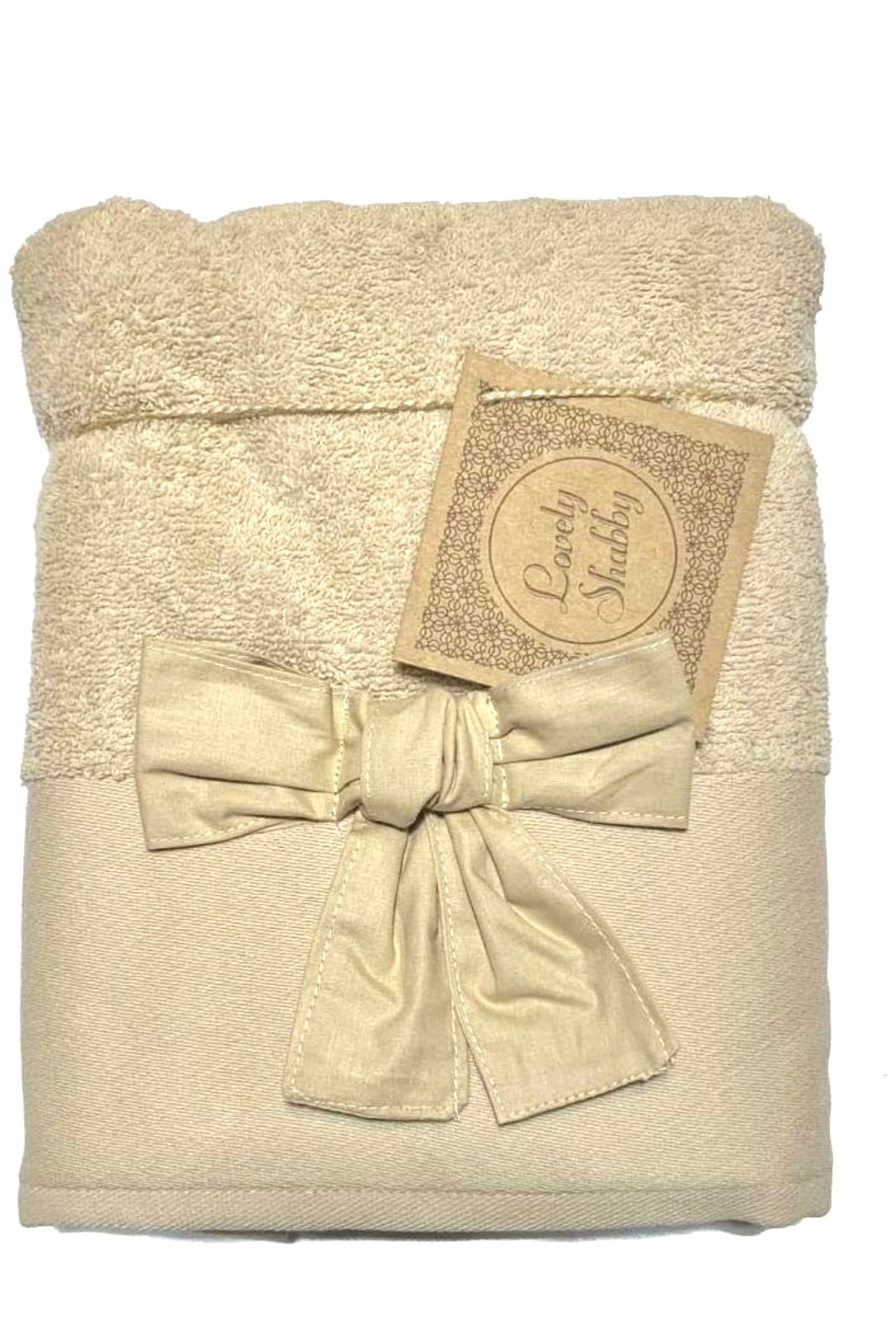 Set Asciugamani Bagno 100% Cotone Modello Fiocco Beige 1+
