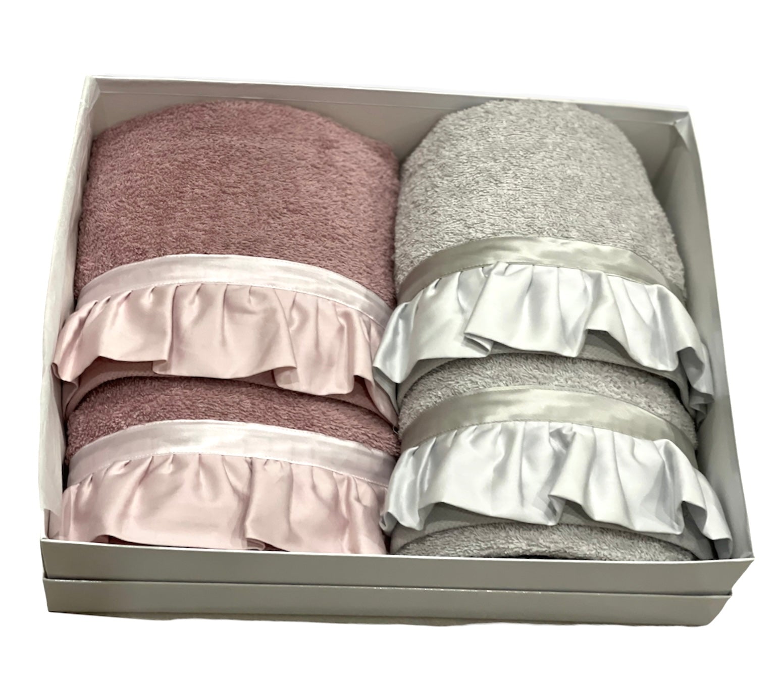 Set asciugamani 2+2 mis. 40x60cm 60x100cm Colore: grigio e cipria