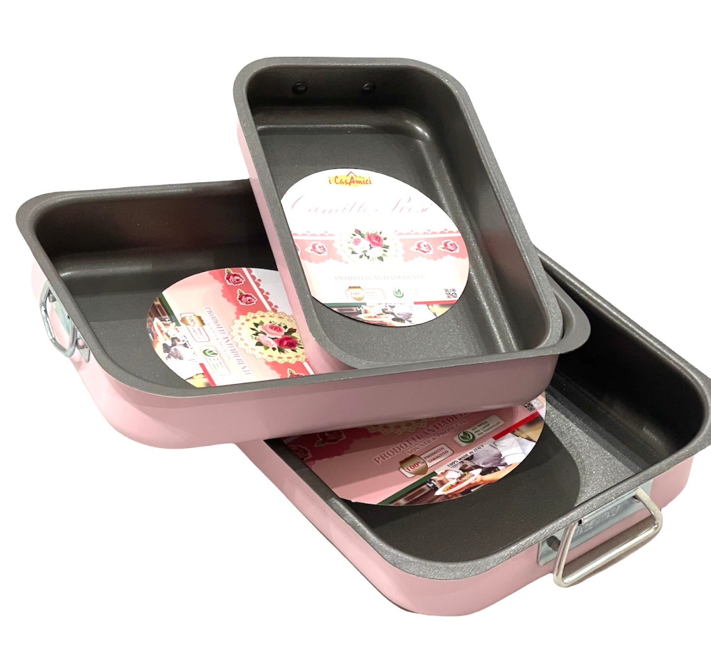 Teglie rosa di diverse dimensioni.