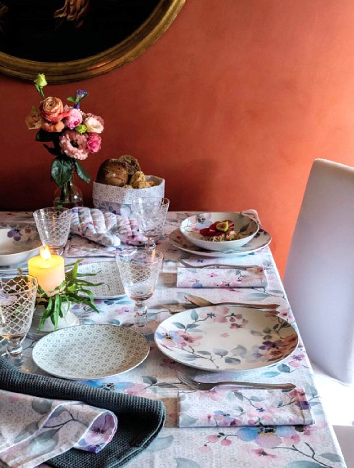 Tovaglia Andrea Fontebasso 1760 con fiori Textile Watercolor